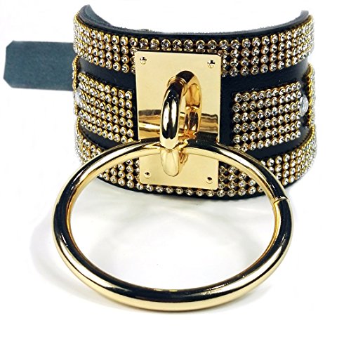 ✔ 100% HANDMADE- Each black choker necklaces are 100% handmade by me with love and passion. The Black leather collar O Ring Choker features breathtaking rhinestones that glimmer against a black leather collar with O-Ring background. It's so sexy and cool!