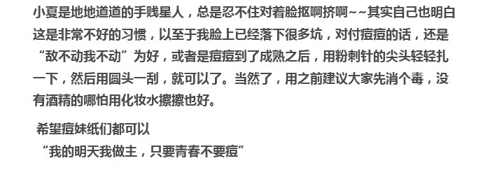 对了对了,在这里告诉大家一个去痘的小常识。就是一定一定不要用手去挤痘痘,那样