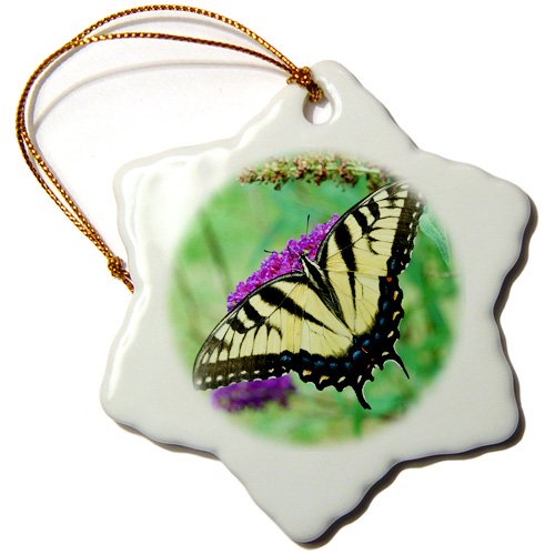 3dRose orn_113932_1 Pretty Swallowtail Butterfly on A Purple Butterfly Bush Photograph-Snowflake Ornament, 3-Inch, Porcelain