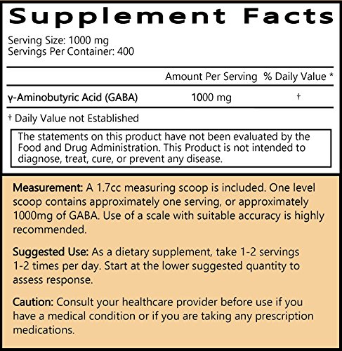 -. Feature : NATURAL RELAXATION AND CALMING SUPPLEMENT - GABA (Gamma-Aminobutyric Acid) is the natural relaxation neurotransmitter produced in your body and helps to promote calm / PROMOTES HEALTHY SLEEP - This GABA supplement helps to promote healthy sleep patterns and to improve sleep quality / MAINTAINS POSITIVE MOOD & HELPS TO REDUCE STRESS - Clinical studies have indicated that GABA is important for maintaining a healthy mood and helps to regulate stress / 100% VEGAN AND VEGETARIAN FRIENDLY - This GABA supplement contains no animal products whatsoever / NO ADDITIVES - Our GABA is free from additives, fillers, preservatives, lactose, gluten and GMOs. It is tested by independent 3rd party laboratories in the US and ships with a Certificate of Analysis to ensure the highest quality
