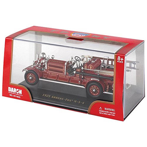 -. Binding : Toy -. Brand : Johnson Smith Co. -. Color : Red -. EAN : 0842988125524 -. Feature : Replica 1925 Ahrens-Fox model crafted in die cast metal and plastic. / With accurate paint and 360° detailing, removable ladder, and moving wheels. / Includes acrylic collector's case and base. / Approx. 6" long. / 1:43 scale. -. IsAdultProduct : 0 -. Label : Johnson Smith Co. -. Manufacturer : Johnson Smith Co. -. MPN : 41707 -. PackageQuantity : 1 -. PartNumber : 41707 -. ProductGroup : Toy -. ProductTypeName : TOYS_AND_GAMES -. Publisher : Johnson Smith Co. -. Studio : Johnson Smith Co. -. Title : 1925 FDNY Fire Engine 290 Diecast Ahrens-Fox Collectible Toy Truck Vehicle -. UPC : 842988125524