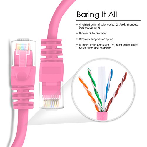 GearIt 75 Feet Cat 6 Ethernet Cable Cat6 Snagless Patch - Computer LAN Network Cord, Pink [Lifetime Warranty]