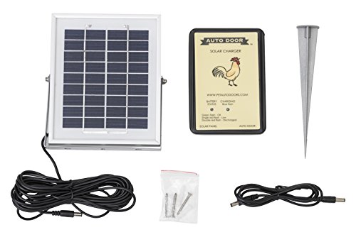 -. Binding : Lawn & Patio -. Brand : Coop Auto Door -. EAN : 0862713000032 -. Feature : Plug & play compatible with all coop auto door products, no assembly required / Solar panel can be staked in ground or attached to wall with self-contained mounting bracket / Rechargeable battery has flashing indicators showing charging, full charge & low battery conditions / All necessary mounting hardware and cables are included in kit / Panel to battery cable over 16-ft, rechargeable battery to coop auto door cable over 3-ft -. Label : Bird in Hand Pet Structures -. Manufacturer : Bird in Hand Pet Structures -. Model : SOLAR-7.4 -. MPN : SOLAR-7.4 -. PackageQuantity : 1 -. PartNumber : SOLAR-7.4 -. ProductGroup : Lawn & Patio -. ProductTypeName : OUTDOOR_LIVING -. Publisher : Bird in Hand Pet Structures -. Studio : Bird in Hand Pet Structures -. Title : Coop Auto Door SOLAR-7.4 Chicken Solar Kit -. UPC : 862713000032