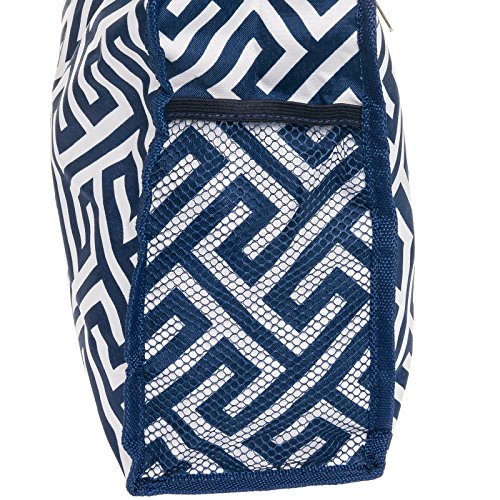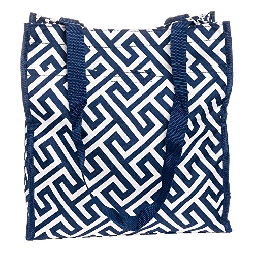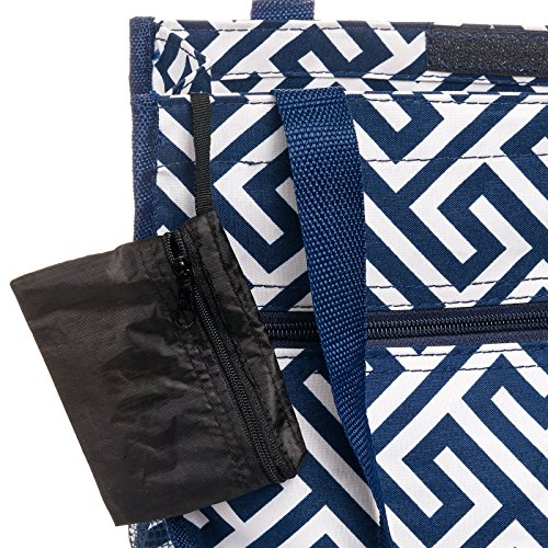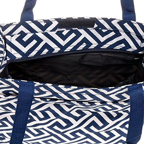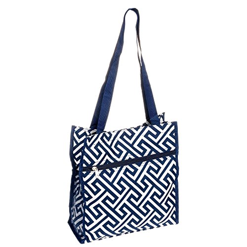 Womens Greek Key Tote Bag w/ Coin Purse (Navy & White)