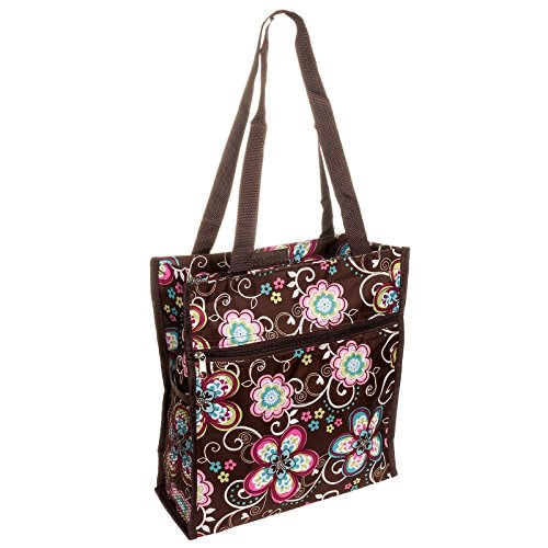 Take this multi-purpose 13" Tote Bag everywhere you go. The canvas textured nylon material is strong enough to hold almost anything you can fit in it. Exterior features include a main zippered compartment for extra security, 1 large zippered front pocket, 1 additional slip pocket, and a mesh water bottle pocket on the side. A durable lined interior includes a detachable coin purse as an added convenience. Measures 13" x 12" x 5" w/ 14" handle drop.