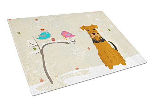 Caroline's Treasures BB2513LCB Christmas Presents Between Friends Airedale Glass Cutting Board, Large, Multicolor