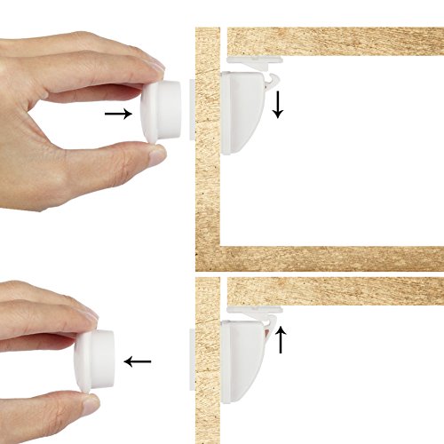 No drilling required ;stick the cabinets lock on the required area Strong 3M adhesive sticker strong enough to keep your baby safe for a long time ,Can be removed without damage furnitures.