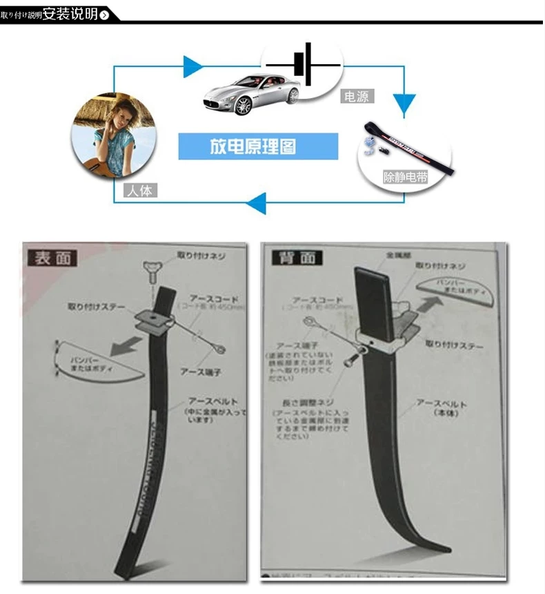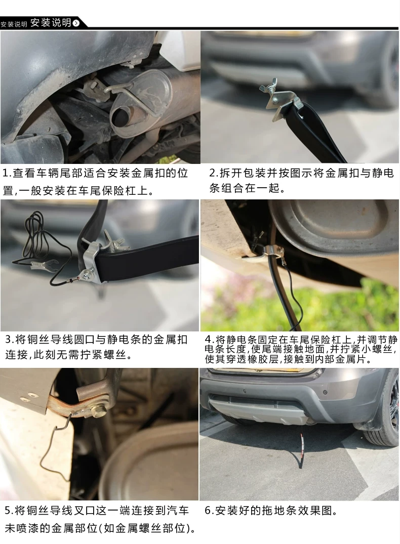 1, made of a conductive rubber and metal 2 special heavy construction, rubber has a strong conductivity, can effectively remove static electricity inside the car, and wear durability.