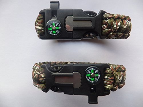 M.P.S TWIN PACK Camouflage Paracord Survival Bracelet, Outdoor Emergency Camo Para-cord Bracelet, with Fire Starter, Compass & Whistle. Ideal gift for anyone who enjoys Camping, Hiking or Fishing