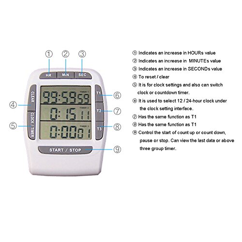 -. Brand : GigaMax -. Color : White -. EAN : 0760079651601 -. Feature : 100% brand new / Large LCD with clear and readable information on the screen. / 9 buttons for operating. / Memory and alarm will beep for 1 minute once it reaches the set time. / Search GigaMax for more choices! -. Label : GigaMax -. Manufacturer : GigaMax -. MPN : G-1920451880-DEG-Triple -. PartNumber : G-1920451880-DEG-Triple -. ProductGroup : Lighting -. ProductTypeName : LIGHT_SOURCE -. Publisher : GigaMax -. Studio : GigaMax -. Title : GigaMax(TM)Cooking Tools Cronometro Para Cozinha LCD Digital Alarm kitchen Timer with Triple Display 3-Line Timer Countdown Stopwatch -. UPC : 760079651601