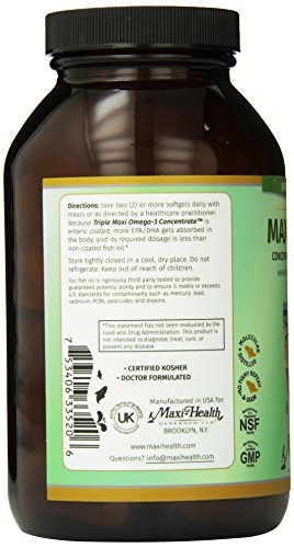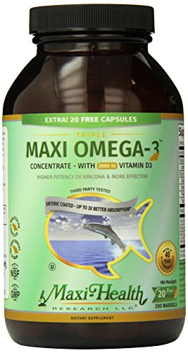 -. Title : Maxi Health Triple Omega-3 Concentrate - Fish Oil - "2000 IU" Vitamin D3 - 200 Capsules - Kosher