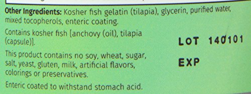 -. Feature : RIGOROUSLY TESTED By a Third Party to Provide Guaranteed Potency and Purity with each Gel Tablet. / NO FISHY AFTERTASTE is achieved by using an Enteric Coating to bypass the Stomach and dissolve in the small intestines for best results. / GREAT FOR Adults, Men, Women, Teens, Boys, Girls. / KOSHER CERTIFIED using only Anchovy and Tilapia Fish, Gluten Free, No Artificial Flavors, Colorings or Preservatives. / SAFE: Made in the USA, Manufactured in a NSF & FDA registered and GMP Certified Facility : MaxiHealth Was Established in 1974