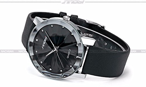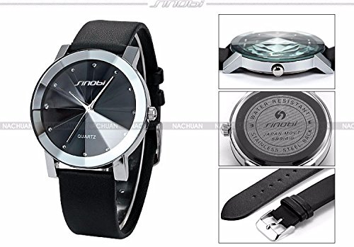 -. Title : SINOBI Crystal Elegant Mens Women Black Quartz Leather Wrist Quartz Watch Gift SNB021