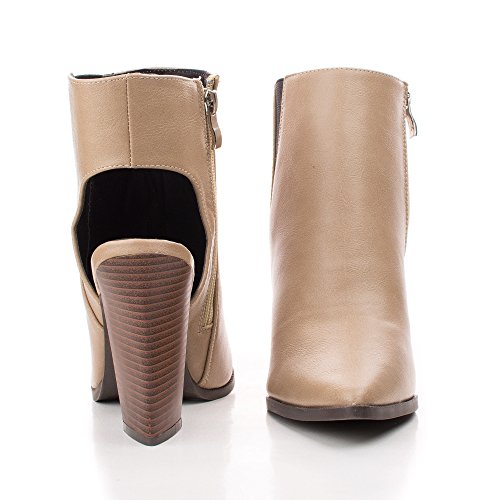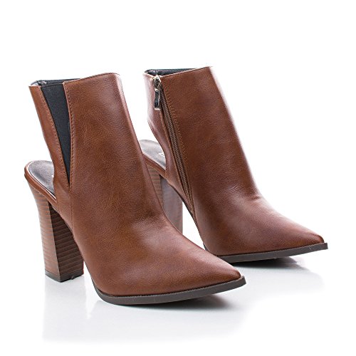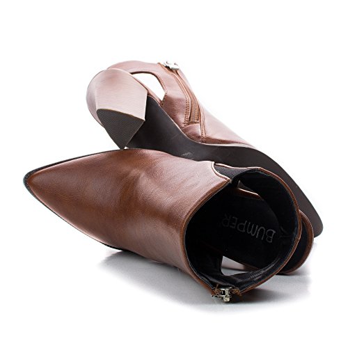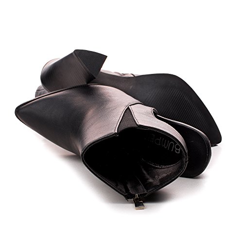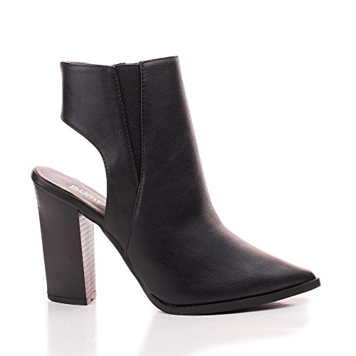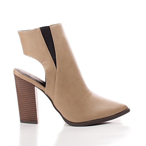 Binding : Apparel Product Description Make heads turn in these pointy fashion statement booties, featuring a pointy toe, contrast stitching, a side elastic insert, a side zipper for easy wear and closure, a slight cushioned insole, a cut out look, and an approximate 4 inch Triangle shaped stacked chunky heel. (Please note that these measurements are based on a size 6). Available in Black, Brown, Taupe (Beige), etc. All man made materials. By Bumper Shoes. Please note that all monitors display color differently, what you see on your monitor might be slightly different from the actual product. We strongly suggest you to look at this listing in 3 or more different device to get an average of the color. 0