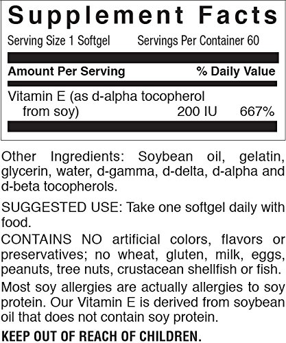 High potency Vitamin E derived from natural soy. Protects your heart from the effects of aging. Improves the appearance of your skin and hair.