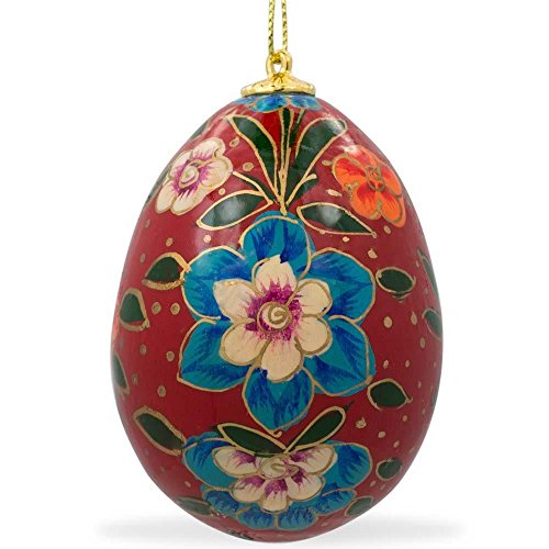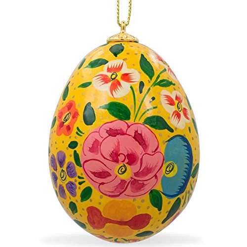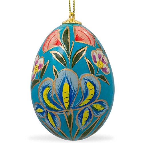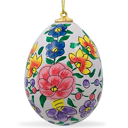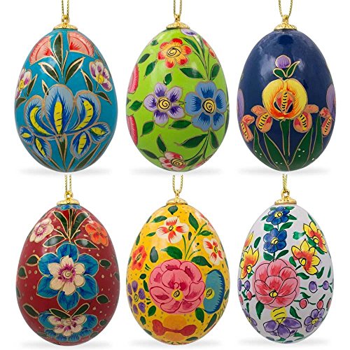 3" Wooden Set of 6 Garden Flowers Ukrainian Easter Eggs Christmas Ornaments Pysanky