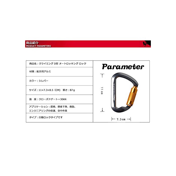 원본상품명: Likorlove クライミング用 カラビナ [2個セット] D型 自動ロック式ロッキンカラビナ 登山キャンプリギングアウトドア用品