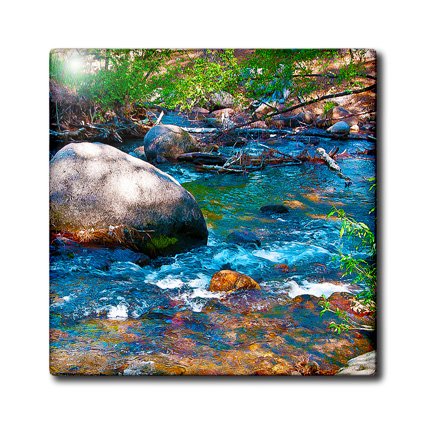 3dRose ct_53484_3 Rocks Along The River Bed Done in Vibrant Colors of Blue, Orange, Teal and Yellow-Ceramic Tile, 8-Inch