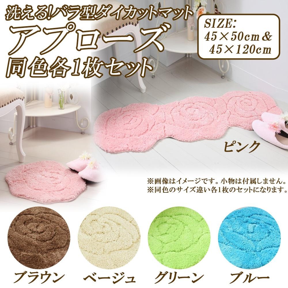 | バラのデザインが可愛いマット♪大小(同色)各1枚のセットです。裏面にノンスリップ加工を施しているため、滑りにくくなっています。パイル長は15mmと踏み応えがあります。洗濯機で丸洗いが出来るため、お手入れカンタン!!キッチンやトイレ、バスマットはもちろん、お部屋のアクセントにもおすすめです♪ |