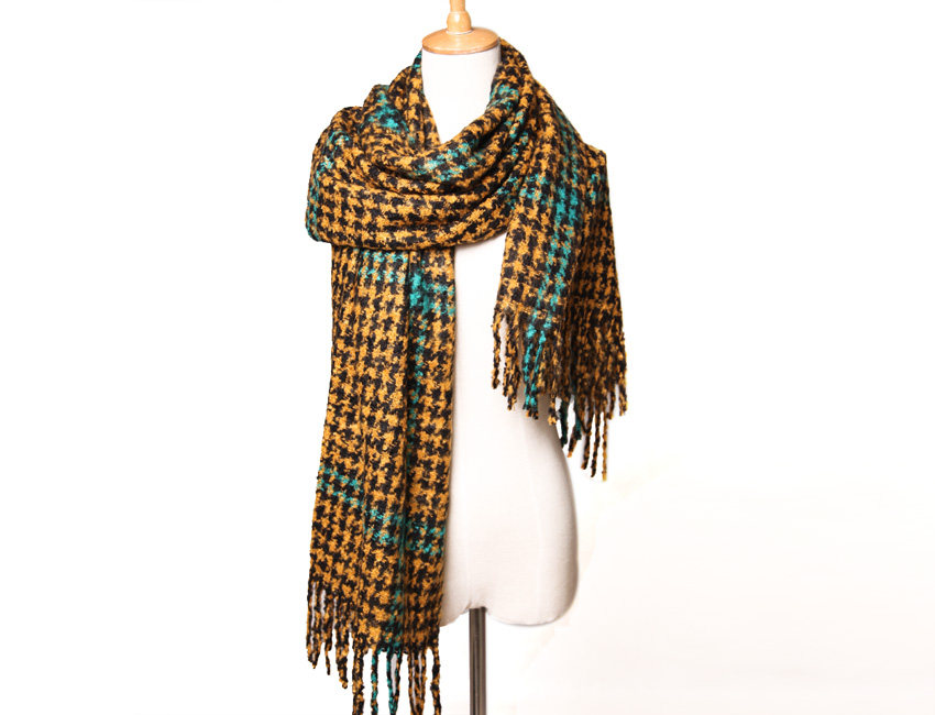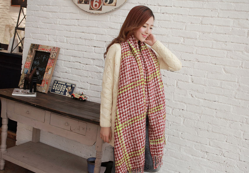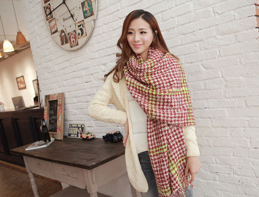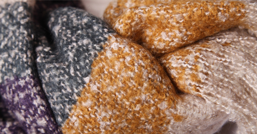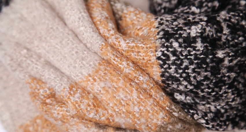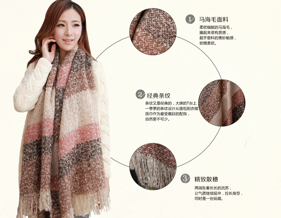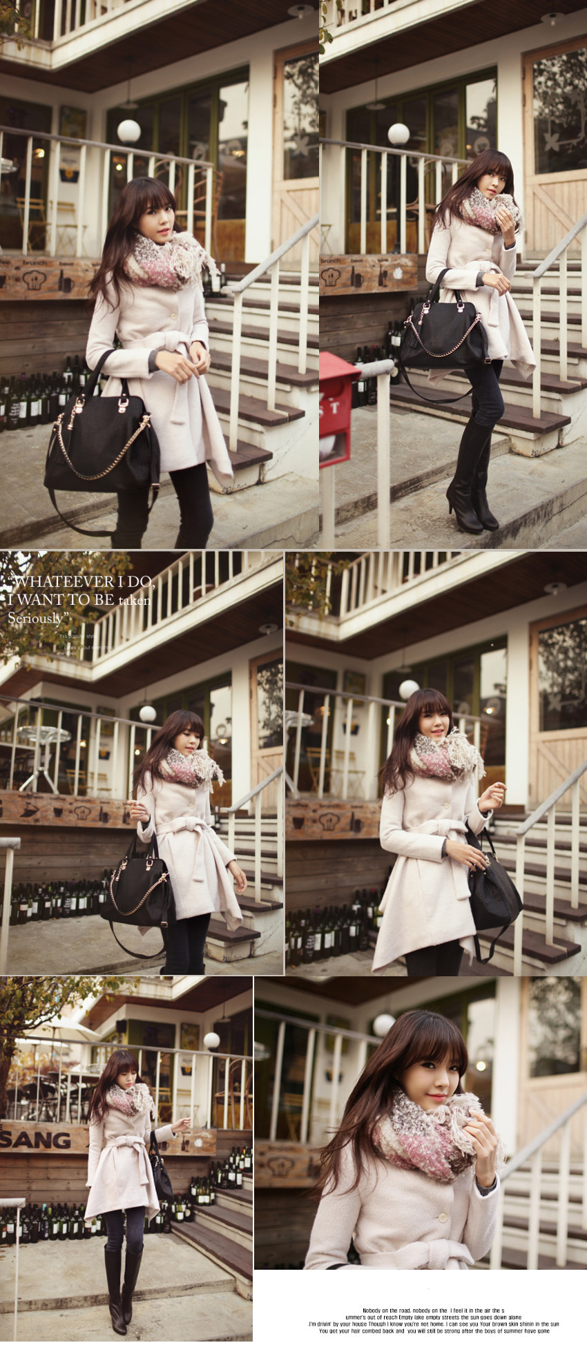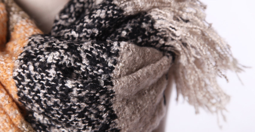 围巾作为最受瞩目的配饰,自然更不可少。材质是柔软细腻的马海毛,
