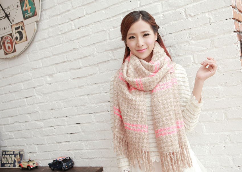 热爱这一条甜美范的围巾,柔美的配色,如初春一枝嫩芽的梦,