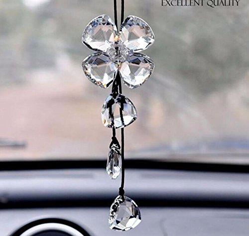 -. Title : Lucky Four Leaf Clover Car Pendant Hanging Ornament Crystal Car Interior Decoration Car Accessories