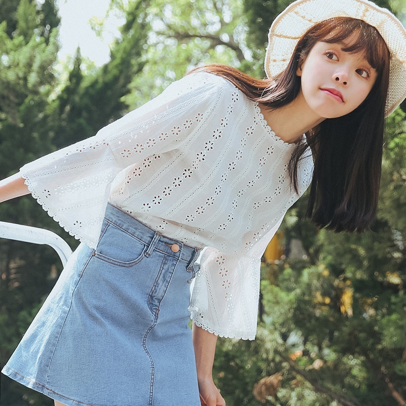 ガーリーでフェミニンな印象を与えてくれる、ホワイトコットンブラウスです☆