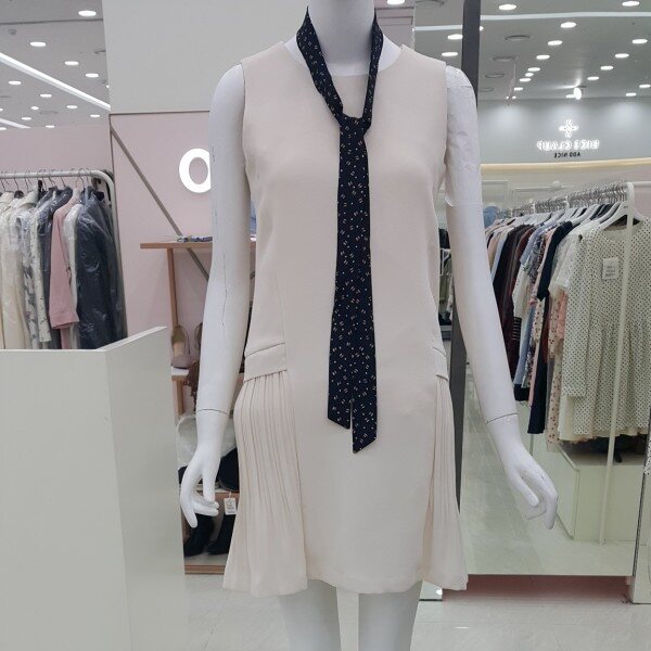 리본타이로 포인트를준~~~~~ 심플한 디자인의 ~~ 옆플리츠 민소매 원피스예요~~~