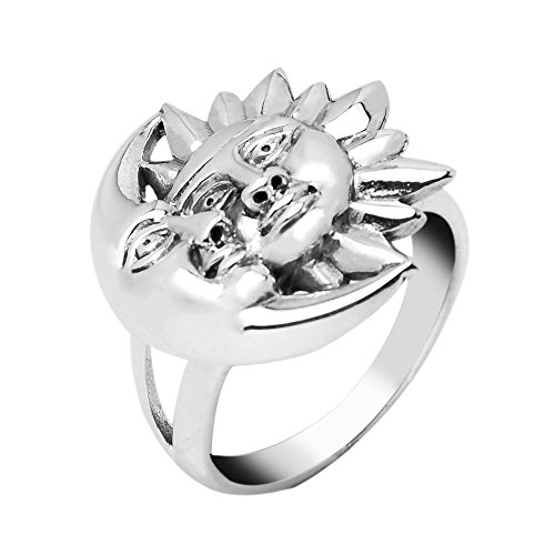 -. Title : 925 Sterling Silver Crescent Moon and Sun Celestial Lunar Face Yin Yang Band Ring 6, 7, 8