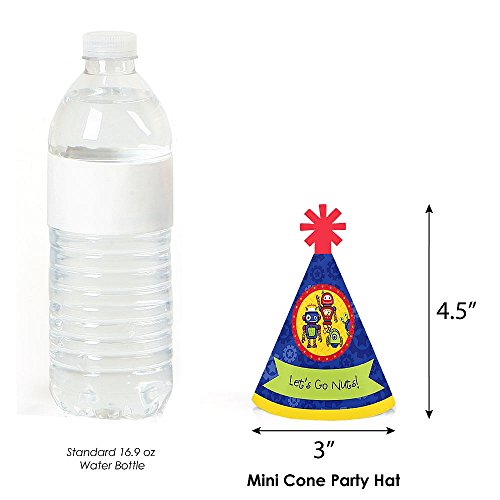 -. Title : Robots - Mini Cone Baby Shower or Birthday Party Hats - Small Little Party Hats - Set of 10