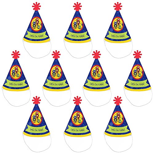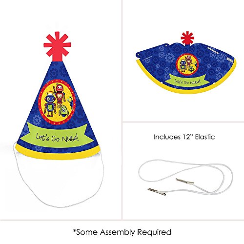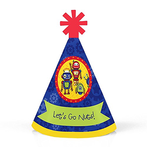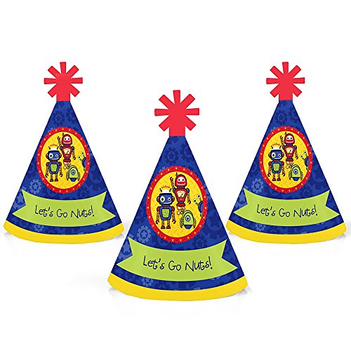 -. Feature : Robots Mini Party Hats INCLUDES 10 Robots party hats with elastic chin straps. Mini baby shower or birthday party hats will fit both children and adults. / 10 Robots party hats SIZE 4.5 inches tall and 3 inches in diameter at the base. The included elastic chin straps measure 12 inches long. These cute robot party accessories feature a unique star cut-out decoration at the top and the P.R.Inted saying "Let's Go Nuts!". / FUN ROBOTS PARTY ACCESSORIES: Robots mini party hats are perfect for your baby shower or birthday party. This set of cute tiny party hats will help you take adorable baby shower or birthday photos. Best of all, mini party hats are perfectly sized for adults, kids, and even pets, so everyone can get in on the photo fun. Little party hats are sure to be enjoyed by all your friends and family! / PREMIUM MINI PARTY HATS: Set of 10 Robots mini party hats are professionally P.R.Inted on heavy-duty card stock paper with a photo-like shine. They are individually inspected, then carefully packaged. Robots mini cone baby shower or birthday party hats will arrive flat, with the chin straps attached. Easy assembly is required. Simply roll the party hat into a cone shape and slide the tab into the slot to secure. / MADE IN THE USA: Robots - Mini Cone Baby Shower or Birthday Party Hats are designed and manufactured at our Wisconsin facility using materials that are Made in the USA.