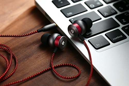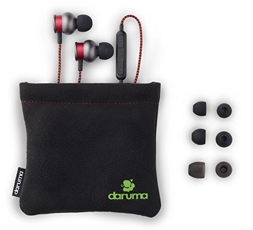 In Ear Headphones Loud BASS Crisp Sound with mic. Metal Earphones Earbuds (Red) Apple iPhone iPad Samsung Galaxy Compatible Microphone and Remote by [daruma] Wave.