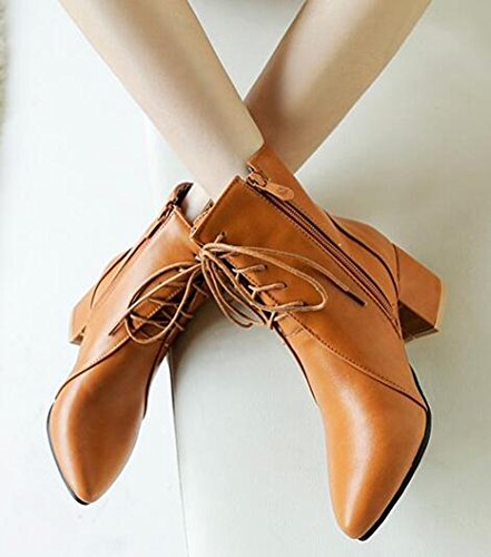 Binding : Apparel Product Description When you walk in the street or take part in some special occasions, do you want to be charming and attractive among others? Or are you tired of wearing the same booties with others? How could you miss these trendy outfits? This pair of comfy boots is made lace up design and zipper decorated. You will like their antiskid, durable and waterproof design. With the chunky heel, you could be at ease when you dress in the comfortable shoes. Many people are in favor of its casual, fashion and elegant style with the closed round toe, ankle high and solid color. In the fall and coming winter, it's a must. They can fit any formal occasions, like wedding, party and club. With one, you will be the focus of fashion. Young ladies can buy one with your close friends. They are a wonderful gift. They are also easy-matching. Choose one suitable size so that it could fit you well. Welcome to our store. IDIFU?is?a?registered?trademark?in?the?USA. We always work on helping every fashion lady to be unique and different. As a trendsetter, YOU ARE DIFFERENT! 0