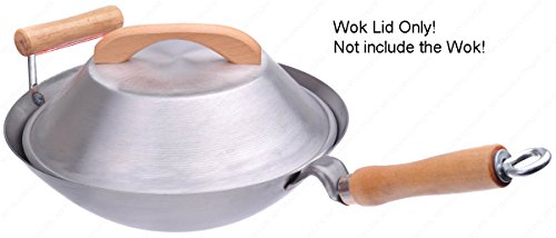 These aluminum lids cover every type of wok. All measure 2 Inches to 3-1/2 Inches in depth. Flat top dome shape with easy grip natural blond, wooden handle. A second, dome top style with wooden knob is also available for 12" woks, 14" woks, and 16" woks. (Lid sizes are at least 1" smaller then the wok size). Wok not included.Feature
