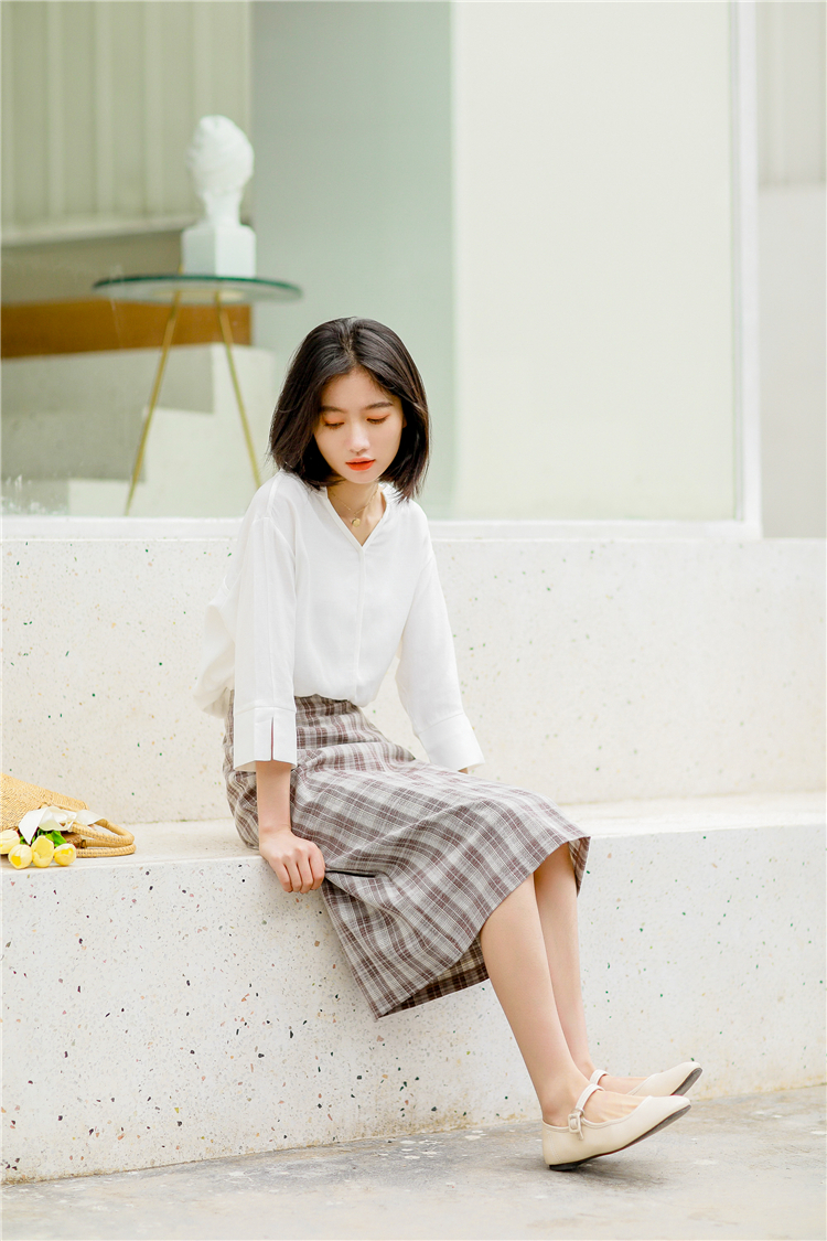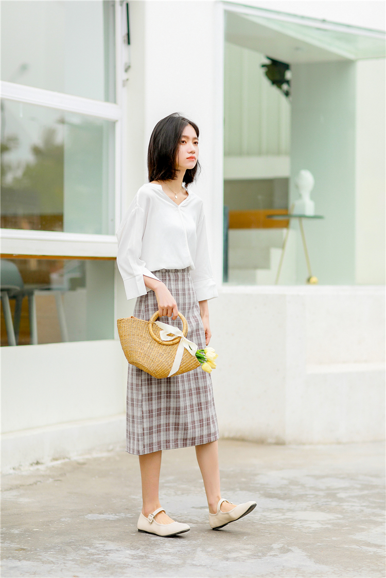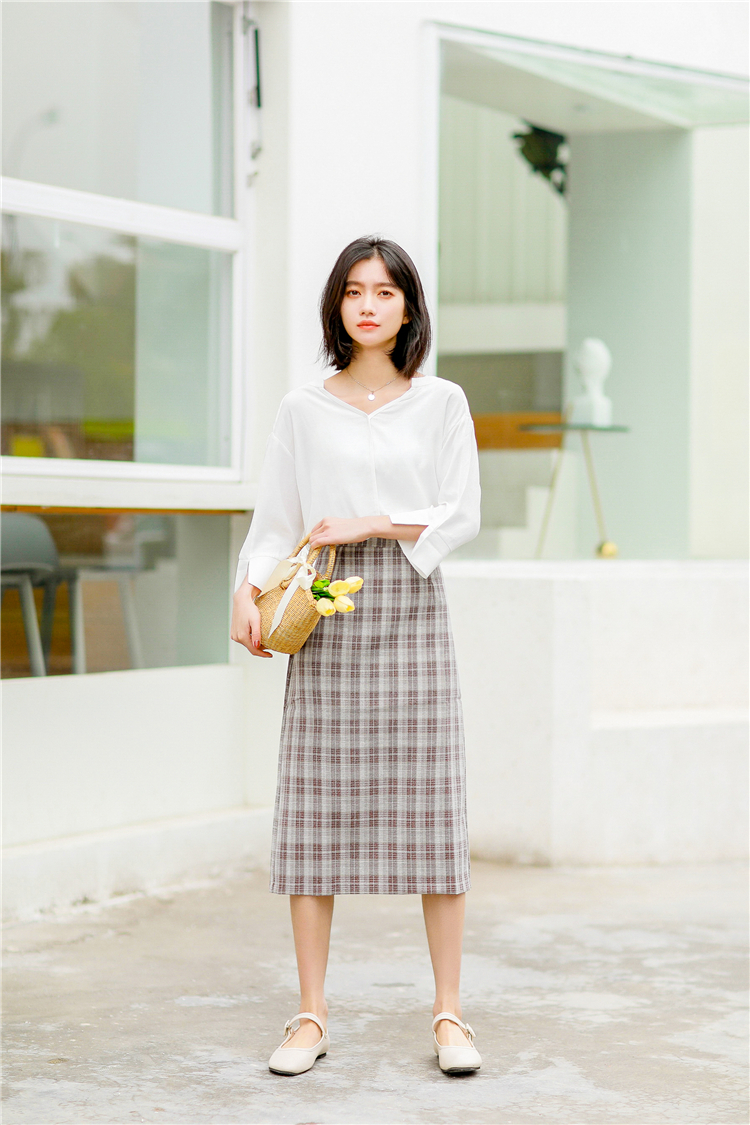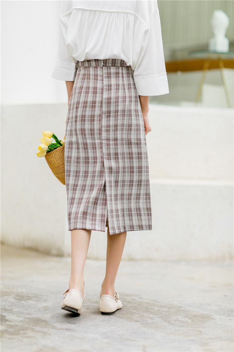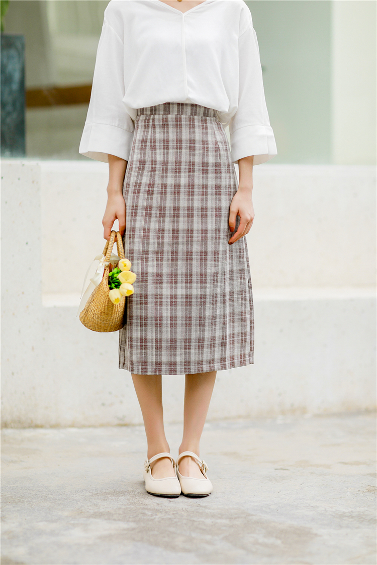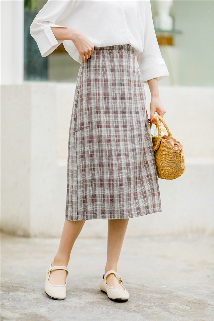 落ち着いたカラーがレトロで大人っぽい雰囲気の膝下丈チェックスカートです。