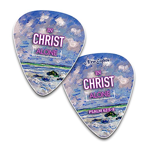 Christian Guitar Picks for Gospel Music - In Christ Alone (12-Pack) - Medium Celluloid - Best Inspirational Music Gifts for Church Worship Team, Pastor, Youth Group, Dad, Mom, Boys, Girls