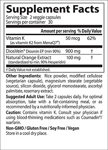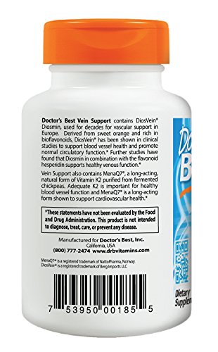 Doctor's Best Vein Support with DiosVein and MenaQ7, Non-GMO, Gluten Free, Vegan, Soy Free, 60 Veggie Caps