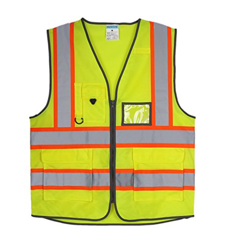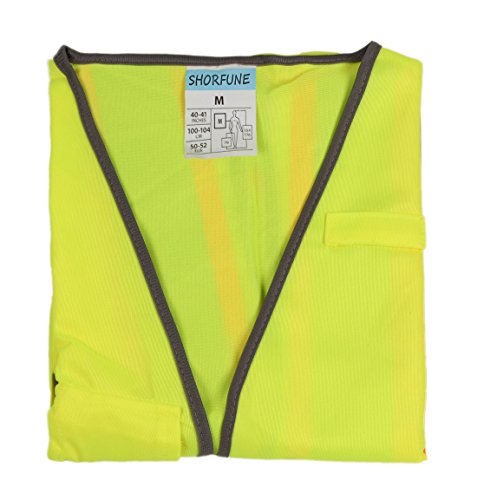 SHORFUNE 1119U High Visibility Reflective Safety Vest with Pockets and Zipper, Double Horizontal Reflective Strips, ANSI/ISEA Standard, Neon Yellow, M