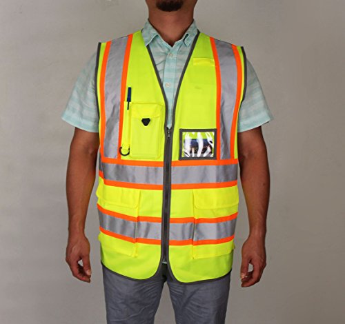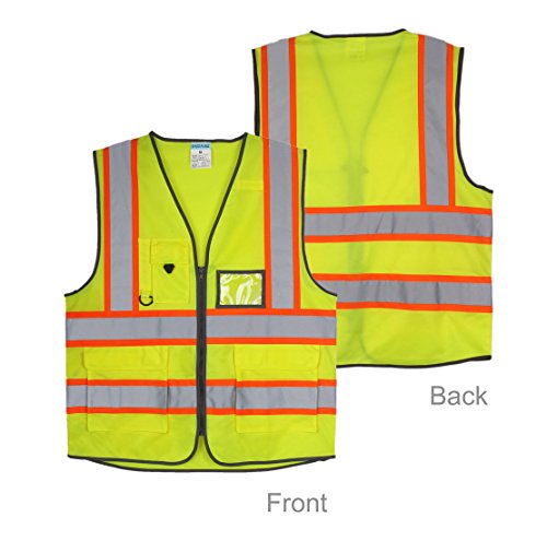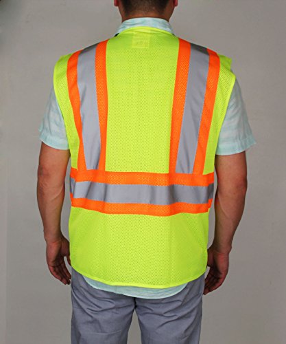 - 2-inches wide silver reflective stripes with orange trim, double horizontal reflective strips along the chest, shoulders, and back for maximum visibility. The premium quality reflective material meets ANSI/ISEA 107-2015 Standards.