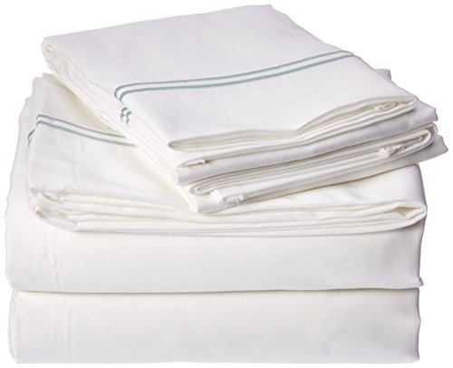 Elle 1200 Thread Count Cotton-Rich Embroidery Sheet Set, Full, White/Pale Sage