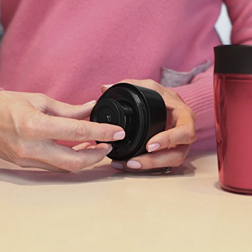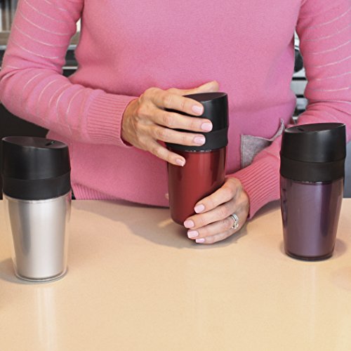 No more spills! Enjoy your hot beverage on the go with the OXO Good Grips Single Serve LiquiSealTravel Mug. This 9.5 oz Travel Mug fits most single serve coffee makers to make your morning routine as seamless as possible. Our Mug features three silicone seals to insure no spills - just click to open and click to seal from a simple button. Double wall construction improves thermal retention to keep your beverage hotter longer, and the no-drip drinking spout is contoured for comfort. A soft, non-slip grip gives you a secure hold when on the go. Accommodates a wide variety of car cup holders.