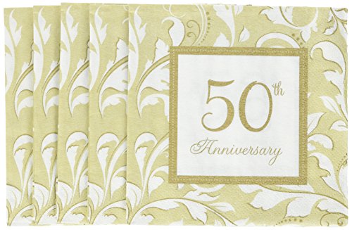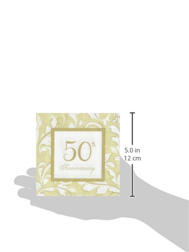 50th Anniversary Elegant Golden Scroll Beverage Napkins 16/pkg