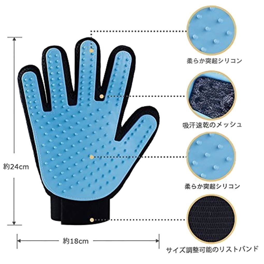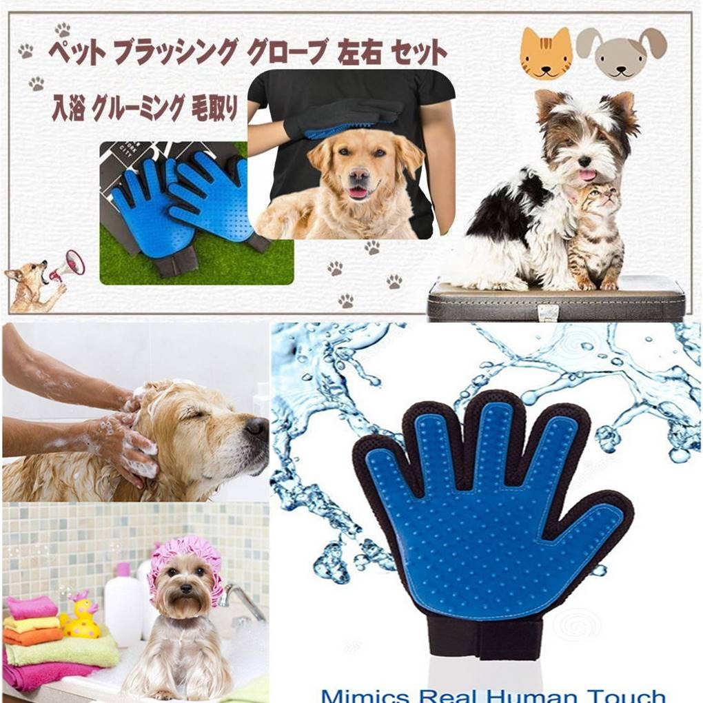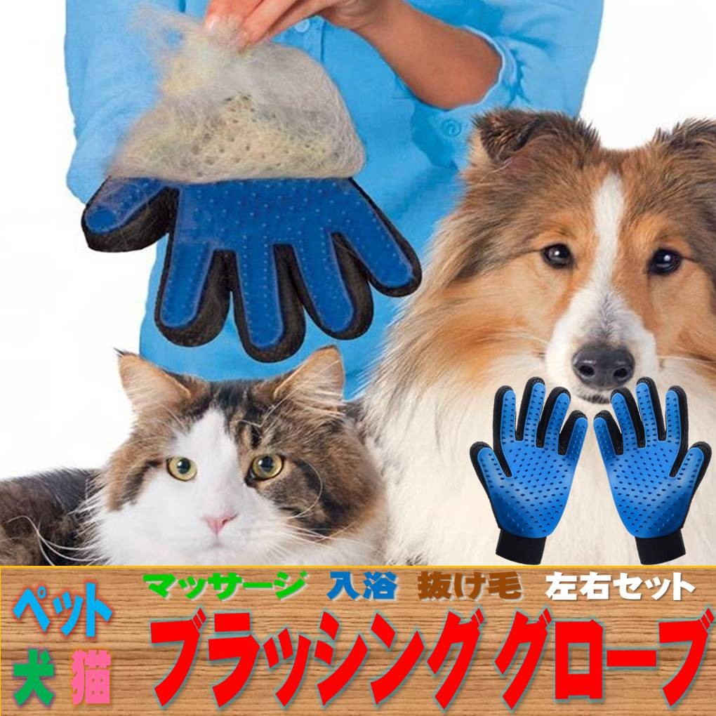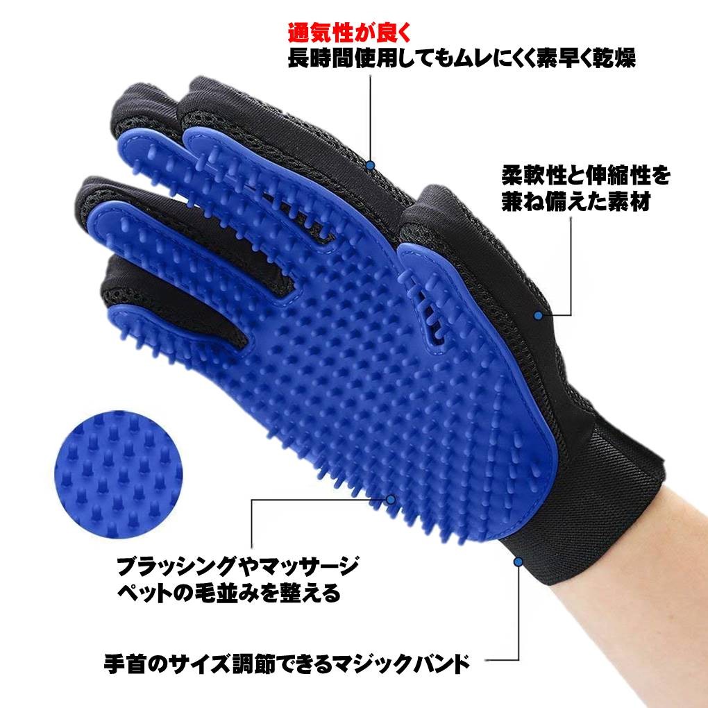 ペット ブラッシング グローブ 左右 セット ブラシ マッサージ 犬 猫 抜け毛 取り お手入れ 1ペア