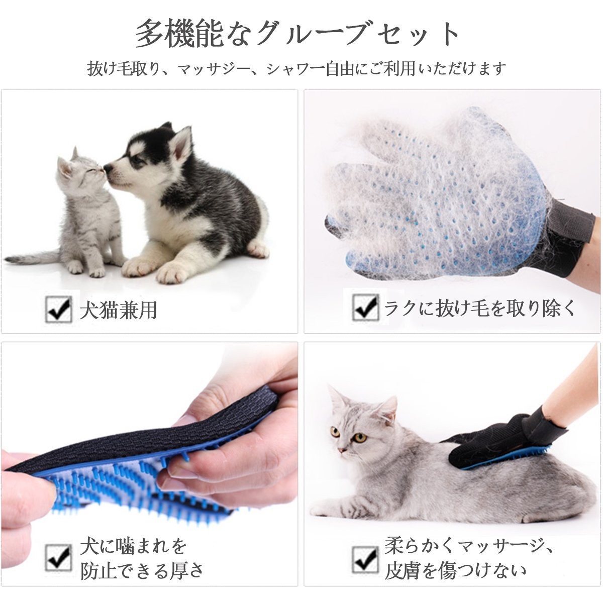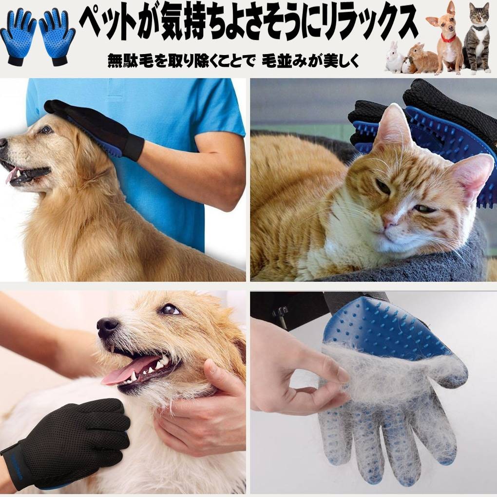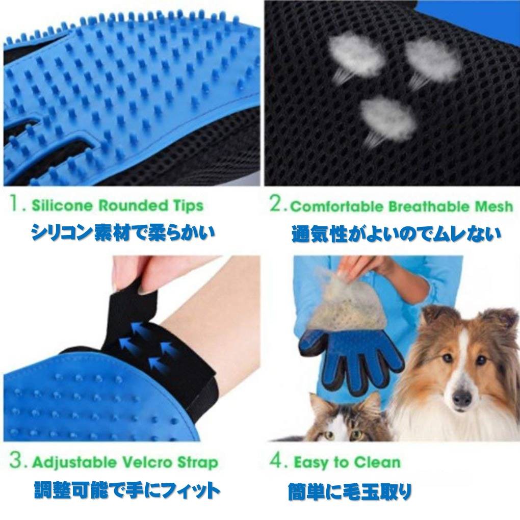 ペット ブラッシング グローブ 左右 セット ブラシ マッサージ 犬 猫 抜け毛 取り お手入れ 1ペア