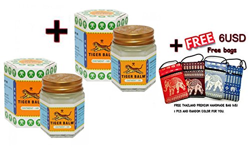 2xTiger Balm White Extra strength Herbal Rub Muscles Headache Pain Relief Ointment Big Jar,(White2x30g+Bag)
