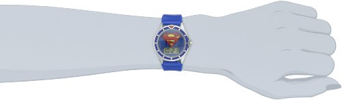 -. Binding : Watch -. Brand : DC Comics -. Department : boys -. EAN : 0030506317197 -. Feature : Round silver-tone watch with Superman logo on dial and bezel / Quartz movement with digital diaply / Protective glass dial window / Features buckle closure and blue silicone band / Not water resistant -. Label : DC Comics -. Manufacturer : DC Comics -. Model : SUP4018 -. MPN : SUP4018 -. PartNumber : SUP4018 -. ProductGroup : Watch -. ProductTypeName : WATCH -. Publisher : DC Comics -. ReleaseDate : 2012-10-20 -. Studio : DC Comics -. Title : Superman Kids' SUP4018 Logo Watch -. UPC : 030506317197