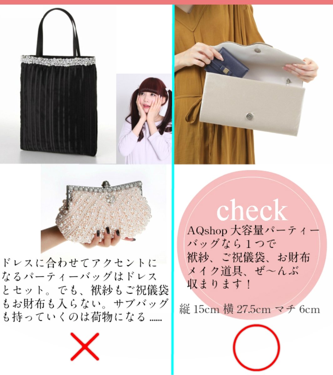 ■ It is a party bag perfect for formal scenes, event things such as pretty ceremonies, wedding reception, second party, Christmas party, etc. that can be used from formal scenes to daily because of its functionality.