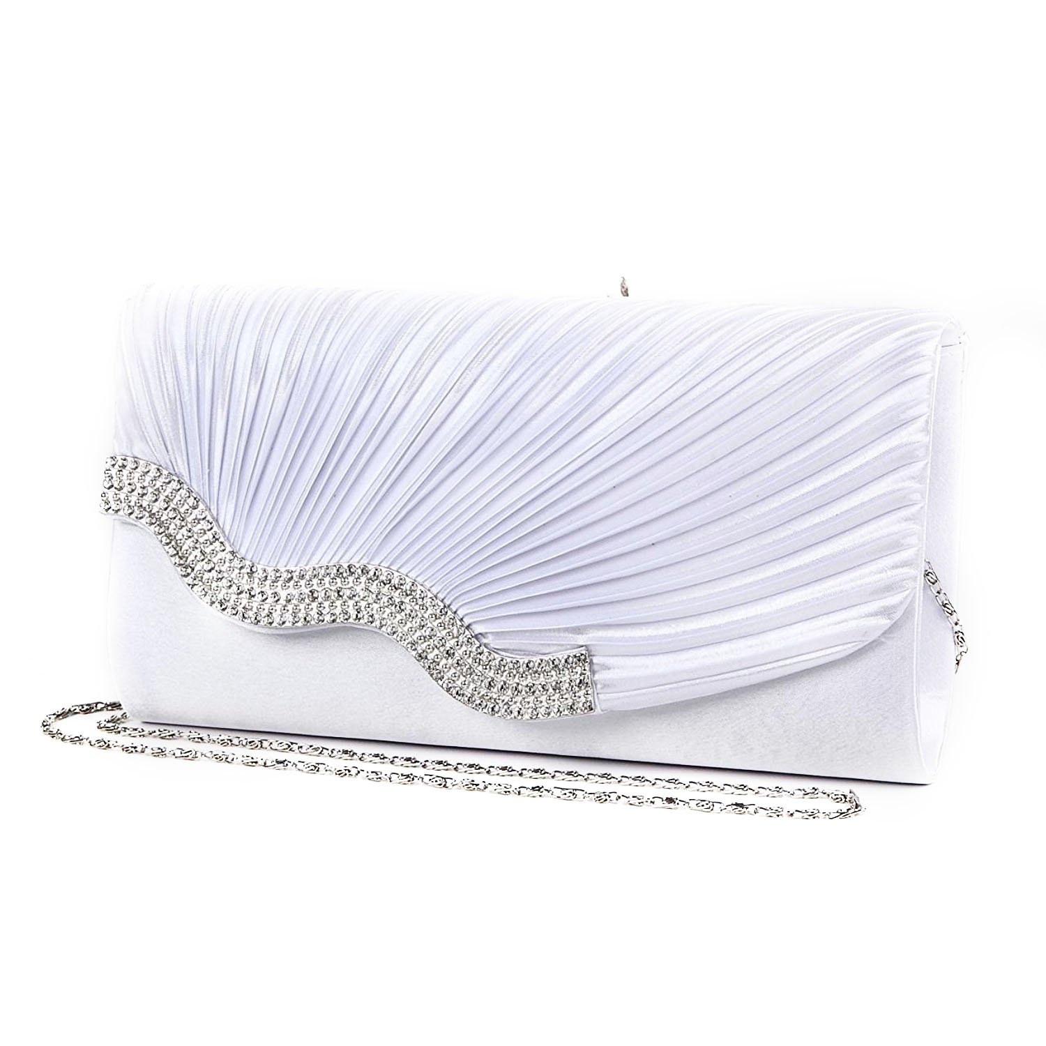It is a party bag plus glamorous with rhinestone on the simple design of satin pleats.
