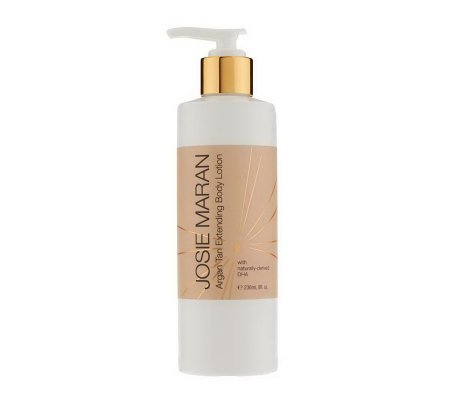 -. Feature : Josie Maran Argan Tan Extending Body Lotion / Josie's Argan Tan Extending Body Lotion does double-duty, lengthening your tan's lifespan while hydrating, smoothing, and nourishing your skin. / Lightly scented with vanilla, and infused with 100% organic argan oil and DHA / Full Size: 8fl oz/236mL