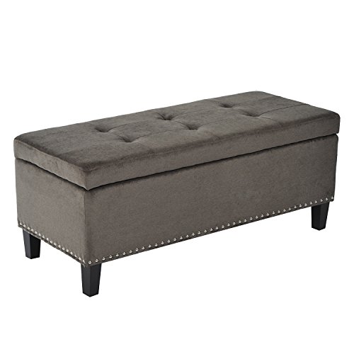 -. Brand : HOMCOM -. Color : Black -. Feature : ✔ DESIGNER STYLE: Enhance the look of your fashion-forward home with our stylish and sophisticated tufted fabric ottoman storage bench which features a rectangular frame and is upholstered in a variety of color choices to enhance your home's existing decor. / ✔ COMFORTABLE SEATING: The thickly padded foam cushion top provides you with complete comfort and support when getting dressed in the bedroom or putting on shoes at the entryway. / ✔ DURABLE BASE: The already stable seat cushion is further supported by four dark wood-finished feet that hold up to 265 pounds ensuring that your bench provides you with years of use. / ✔ STORAGE SPACE: Opening it's hinged lid reveals a generous storage area great for storing remote controls, magazines, toys, books and more! / ✔ EASY ASSEMBLY: Our bench comes ready to put together and requires only light assembly with all instructions and hardware included right in the box. -. Label : HomCom -. Manufacturer : HomCom -. MPN : 833-148BK -. PartNumber : 833-148BK -. ProductGroup : Furniture -. ProductTypeName : HOME_FURNITURE_AND_DECOR -. Publisher : HomCom -. Studio : HomCom -. Title : Homcom 42” Tufted Fabric Ottoman Storage Bench